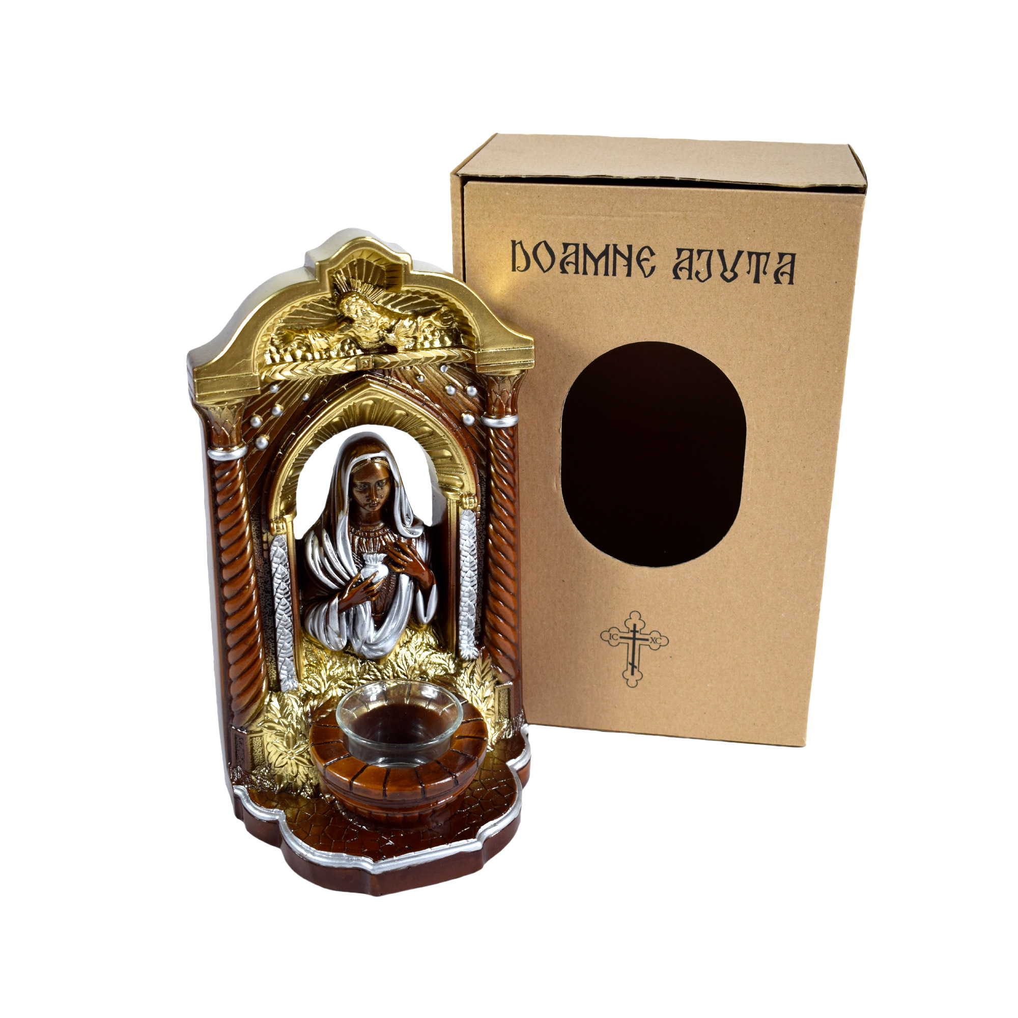 Candelă din ipsos cu Maica Domnului, stâlp, maro / TOF-0984
