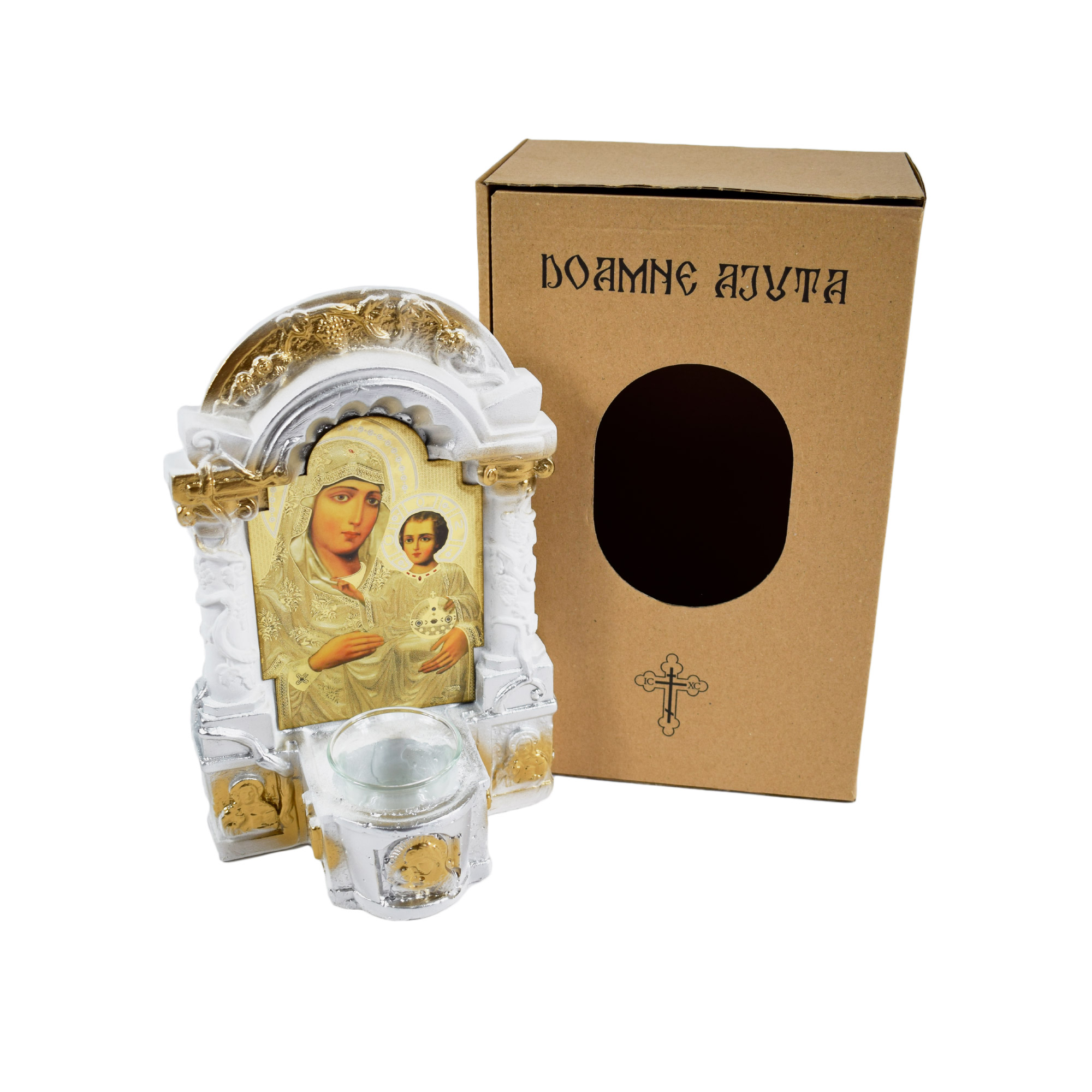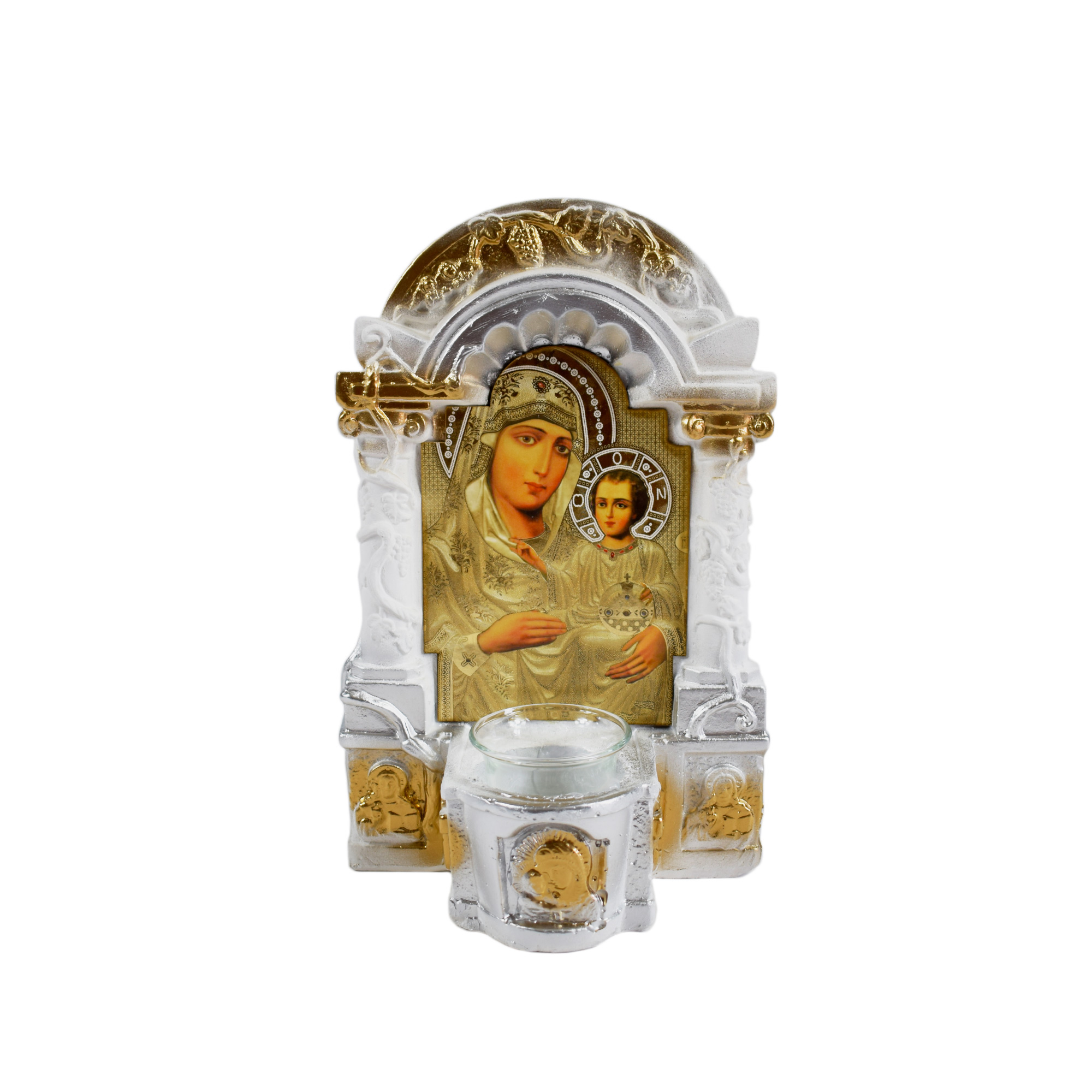 Candelă din ipsos cu Icoană, oval, alb / TOF-1936
