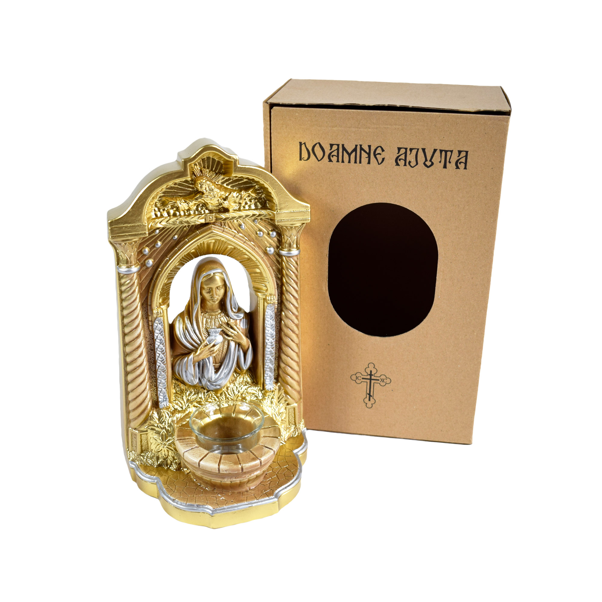 Candelă din ipsos cu Maica Domnului, stâlp, aur / TOF-0991