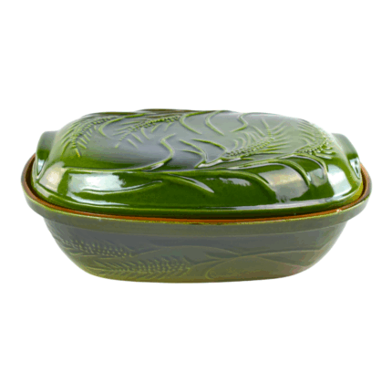 Vas românesc smălțuit din ceramică, realizat manual din lut de calitate superioară. Poate fi folosit în cuptor electric, pe gaz sau cu lemne, ideal pentru preparate tradiționale precum sarmalele și tocănițele. Rezistent la temperaturi ridicate, îmbină tradiția cu funcționalitatea, putând fi folosit atât pentru gătit, cât și ca decor autentic în bucătărie.